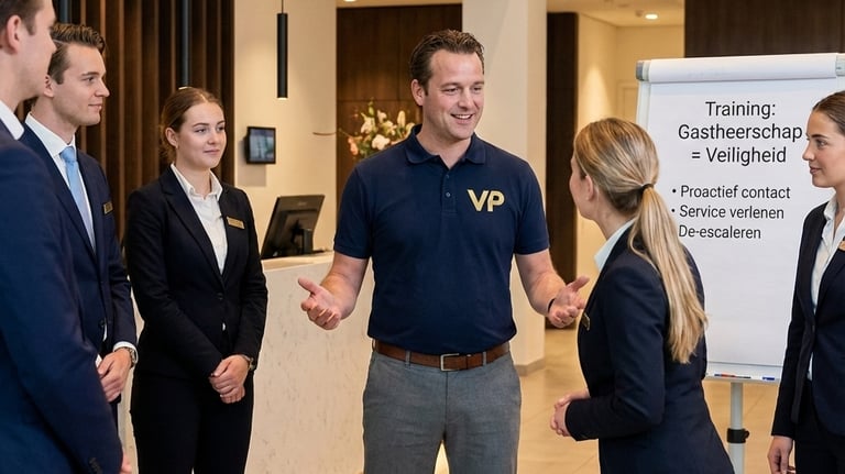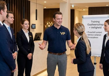 In de training 'Gastheerschap in Veiligheid' leren uw medewerkers hoe ze proactief een veilige én gastvrije sfeer creëren. Door een servicegerichte houding leren ze incidenten te voorkomen en weerstand effectief om te buigen met de juiste communicatie.